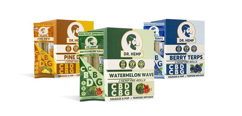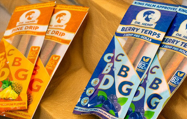 - ( 20 per pack) Dr. Hemp CBD/CBG Pre Rolled King Palm Wraps 20pk Display 2 Pre Rolls Per Pouch 20 Pouches per Display