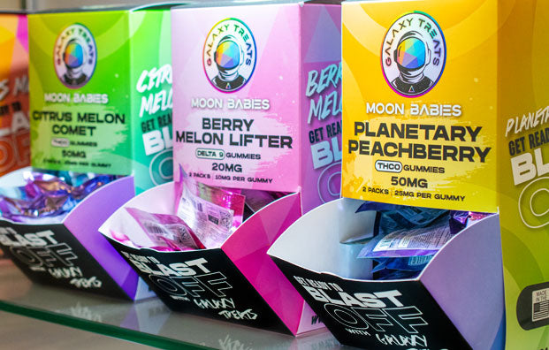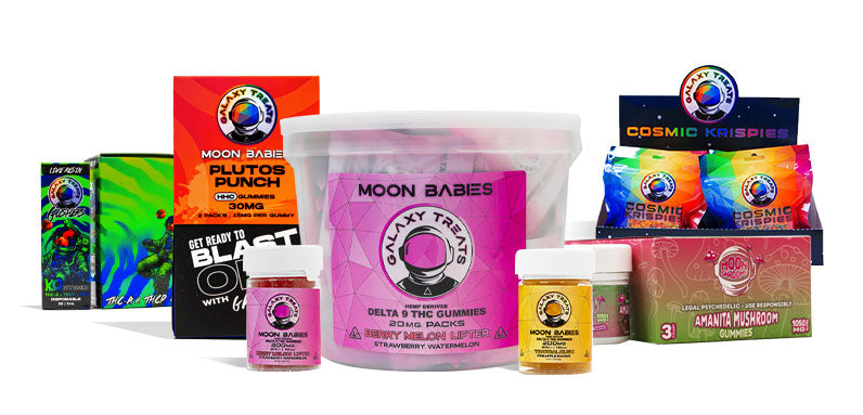 The Galaxy Treats Moon Babies 2500mg D8-D9-THCP Gummies are calling your smoke shop’s name! Let your customers explore the wonders of Delta 8, Delta 9, and THCP combined in an Extra Strength of 2500mg gummies! There are 20 gummies in one jar. Each gummy is enriched with 125mg of cannabinoids derived from hemp, providing a delightful experience—stock on its three flavors now, including Berry Melon Lifter, Blue Punch, and Tropical Kush.
