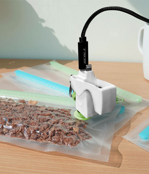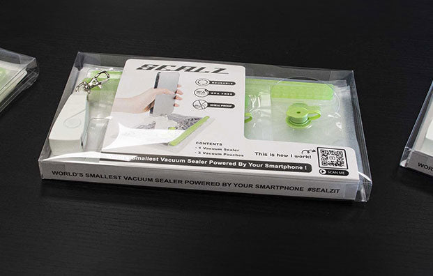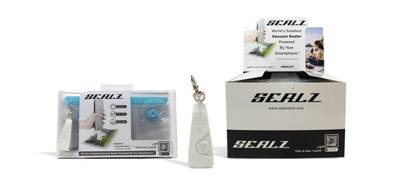 Stock up your store shelves with something useful and convenient! The Sealz Essentials Phone Vacuum Sealer is a device that attaches to a smartphone and generates to seal its own branded bags. The adapter is a USB A to USB Type-C connector that vacuums and tightly seals. Each box display comes with 12 kits, and each kit includes three vacuum pouches in different sizes: small (14g), medium (35g), and large (112g). The vacuum bags provided are odor resistant and are perfect for traveling. Provide your customers with something they will make use of daily!