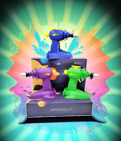 The Thicket Spaceout Lightyear Torch features a unique firing device with a stainless steel tip, safety lock and ignition hold. The Lightyear Torch enables an adjustable flame intensity for preferred heating techniques, creating even, smooth burns. With its wind-resistant jet flame, your customers’ outdoor sessions will be easier to have during a strong, windy day. Its solid grip forms an easier hold and grasp while lighting an apparatus. This torch also includes a spaceship kickstand that presents an amusing, aesthetic display. Coming in an amazing 14 different colors including razzle dazzle camo and army green, these torches will make everyday sessions with their friends entertaining and fun!