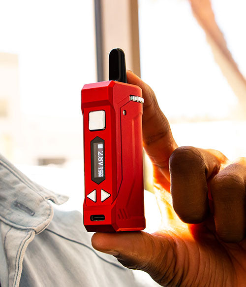 The Yocan HIT Dry Herb Vaporizer by Yocan is a portable dry herb vaporizer. Made specifically for the herb it is 4 inches in height and is powered by a rechargeable battery via USB-C port, a 1400mAh battery. With a ceramic heating base, this convention-styled oven heats up the dry herbs smoothly and evenly for flavorful hits. The device also features a temperature Range of 200°F to 480°F, adjustable vape times of 3 minutes or 5, and a bright OLED screen that informs users of vital information. For quick heating, users can start a cycle by pressing the power button and down buttons at the same time switching between 3 and 5 minutes.
