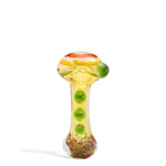 el 4 pulgadas Hand Pipe with Rasta Marbles es una pipa de mano portátil inspirada en rasta para uso de hierbas secas. Con un tamaño de 4 pulgadas, es un diseño compacto que lo hace fácil de transportar sobre la marcha. Utiliza tres vasos de mármol verde y una canica en el costado del tazón que evita que se vuelque y agrega diseño. También incorpora un recipiente hondo que es ideal para empacar.